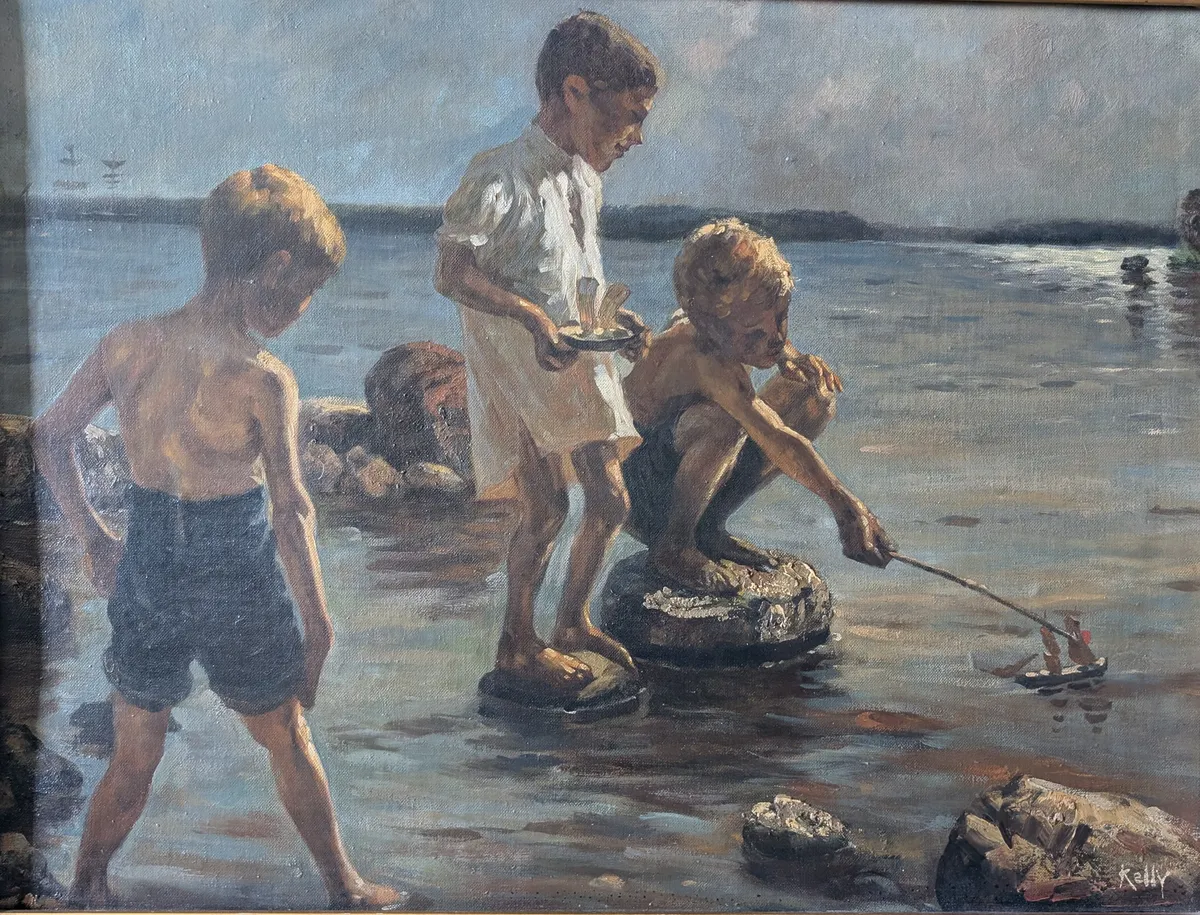 An accomplished homage to Albert Edelfelt (1854 - 1905), a 20th century oil on board by J Kelley out of St Ives.